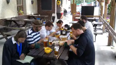 - Rok 2012 byl pro všechny Hebrejce nesmírně krutý, zlý faraon nakázal pozabíjet všechny malé Židy. Tehdy se Mojžíšovi zjevil Bůh, který mu pravil: „Vyveď můj lid z Milovic, Prahy, z Libčic i z Roztok, a hlavně z pomezí Krče a Braníku, převeď je přes posvátnou řeku Sázavu, až dojdete pod horu Medník, do posvátného místa zvaného Pikovice. Zde budete pod horou Medník sloužit svému Bohu.A tak Mojžíš, který přijal jméno Luki Mordechai, vzal svůj lid na pouť do Pikovic, do města oplývajícího pivem a jídlem.Po cestě zjistili, že známá synagoga FEO byla zavřena, a tak milí Židé objevili novou synagogu, jejíž název byl U Dolejších, kde Židé trávili čas modlitbami a studováním tóry. Tuto synagogu si vysvětili, aby mohli požívat košér jídlo a pivo. Jedinou kaňkou bylo to, že majitel chtěl za pivo i za jídlo peníze. A to hodně peněz.Chlapci trávili čas novou zábavou, kterou bylo sledování sportovních přenosů a sázením na ně. Což považovali za jednoduchý výdělek, který jim může přinést hodně peněz, ale mělo to jedno úskalí, že nikdo nechtěl dát své peníze do banku, a tak nebylo co vyhrát.Další zábavou byly potyčky s Palestinci, jak si říkají staří štamgasti z restaurace U Dolejších. Občas tedy byla atmosféra mezi oběma tábory velmi výbušná.V době příměří chodili chlapci vyzvedávat další Židy, kteří mířili do země zaslíbené, nebo chodili na výlety po okolních památkách – tak navštívili Kelímka, FEO, westernovej saloon v Petrově, cukrárnu U Boženky, Hradištko.Velkým zklamáním Sázavy byl Ondysz, který nejenže neměl pejzy, nebyl obřezán, ale hlavně neměl pivní deníky. To se snažil zachránit neustálým telefonováním, ale svoje faux pas už nenapravil.Luki, který přivedl svůj lid do Pikovic, během Sázavy zapomněl, že je Žid a choval se ke své propisce, jako kdyby byla tuha zadarmo a furt psal své poznámky do deníku, kde popsal více než 60 stránek.Viktor, který nás celou dobu bavil židovskými anekdotami, v průběhu pátečního večera dovedl k dokonalosti frustrační kompozici. Kdy fázi očekávání, tedy zahájení konverzace s neznámou dívkou u baru, vystřídala fáze zklamání, kdy dívka po pár větách odešla z hospody pryč. Když odešla i poslední dívka z hospody, Viktor začal pít na žal, zapomněl, že chtěl odjet zpět do Prahy a zůstal v Pikovicích. Na co ale nezapomněl, je to, že je Žid a při placení zaplatil asi polovinu toho, co ostatní, i když pil a objednával nejvíc ze všech. Odjel tedy až druhý den dopoledne, ale kam dojel, nikdo neví, ani on.V sobotu, v den šábesu, se rozhodli odpočívat, a tak vyrazili do Hradištka, kde se po cestě pokoušel Beky koupit nějakou nemovitost, v Hradištku u Lukáše si dali oběd a pak v Pikovicích navštívili fotbalové utkání místního sportovního kroužku, kde domácí vytrvale podporovali, a zřejmě vlivem narůstajícího adrenalinu se stala neočekávaná věc, kdy rozdovádění Židé šli dobrovolně do sprch.Šábes zakončili velkolepou hostinou U Dolejších a sledováním sportovních přenosů.V neděli už jenom posnídali U Dolejších a pak šli na transport vlakem do Německa, kde je čekal konec tohohle ročníku…nebo začátek další Sázavy…Sázava Octoberfest Cup 2013