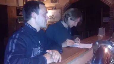 V: "Kdy hrajeme?" L: "Za půl hodiny." V: "Takže oficiálně za sedm minut."