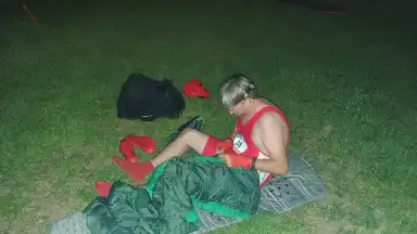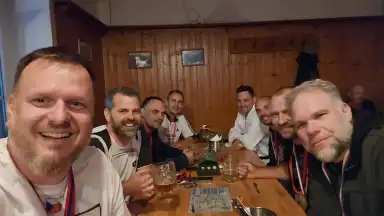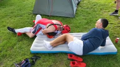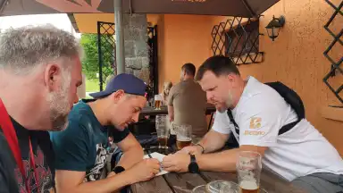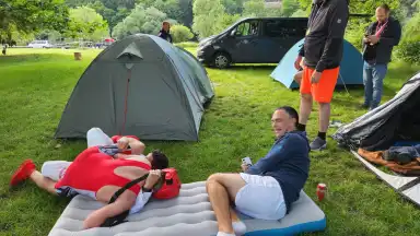 Máca opět přijel posílen skoro celou flaškou rumu, všechny radostně objímal kolem krku, pak nám začal vyprávět několik pikantních historek, lehce ovlivnil hlasování o téma příští Sazavy a v noci zase odjel, letos nezraněn.